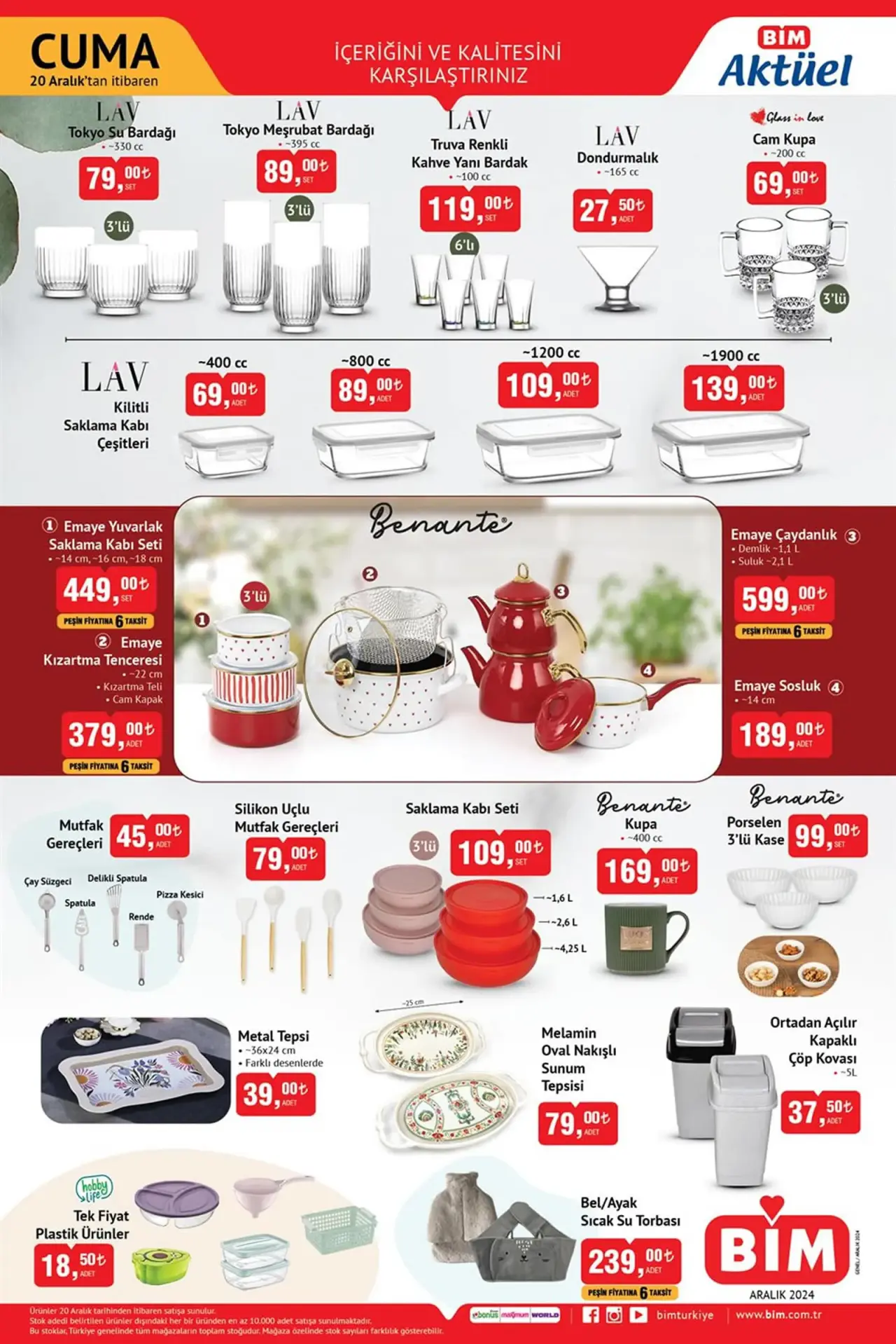BİM kataloğunda mutfak ve ev gereçleri kategorisinde pek çok ürün yer alıyor. Bazı ürünler ve fiyatları şunlardır:
