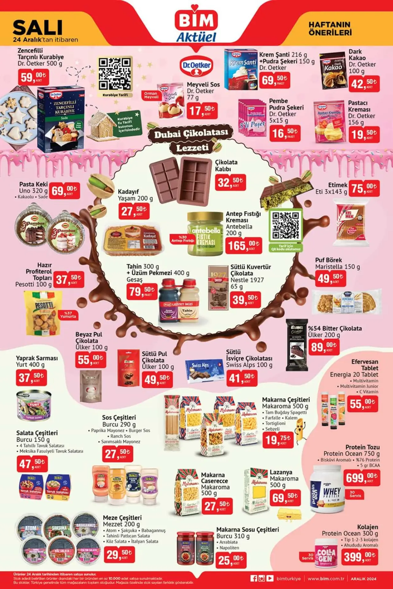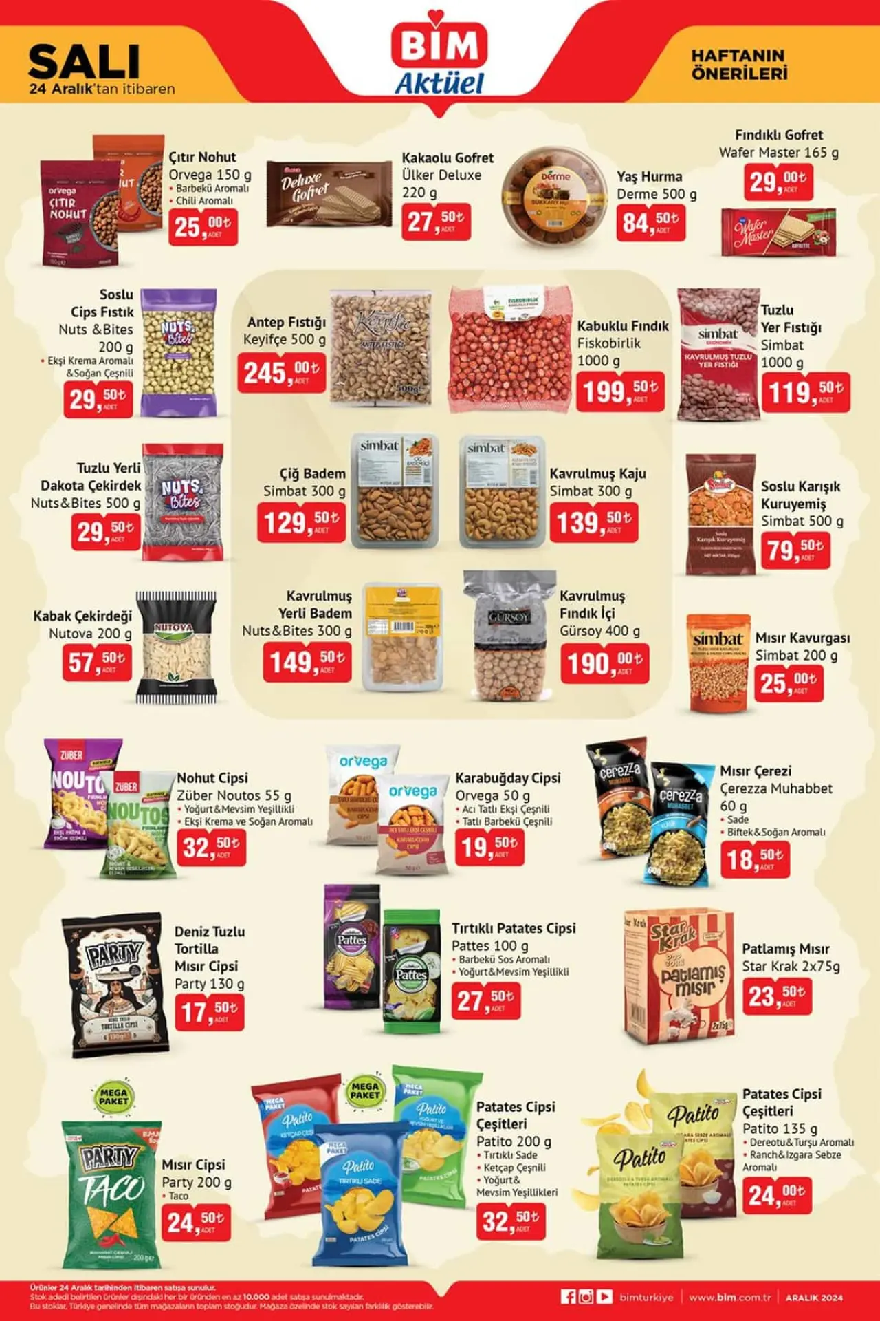 Bu hafta BİM, 24 Aralık 2024 Salı Aktüel Kataloğu ile müşterilerine kaçırılmayacak fırsatlar sunuyor. Geniş ürün yelpazesi, uygun fiyatlar ve özel indirimlerle dikkat çeken katalogda; çikolata, kuruyemiş, makarna, içecek ve daha birçok temel ihtiyaç ürünü yer alıyor. Yeni yıl öncesinde alışverişinizi avantajlı hale getirmek için bu kampanyayı kaçırmayın!