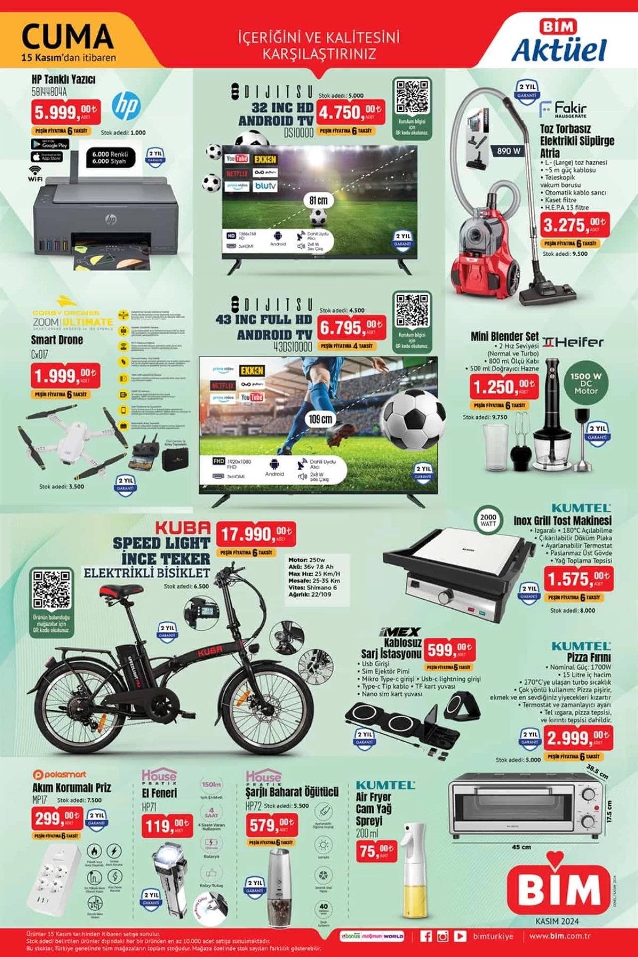 Bim 15 Kasım 2024 aktüel kataloğu, kaliteli ve ekonomik ürünler arayan herkes için cazip fırsatlar sunuyor. Elektronik ürünlerden ev eşyalarına, teknolojik cihazlardan giyim ve oyuncaklara kadar geniş bir ürün yelpazesi ile bu hafta Bim'de büyük indirimler sizi bekliyor. İndirimli fiyatlarla birçok ihtiyacınızı karşılayabileceğiniz bu fırsatları kaçırmamanız önerilir.