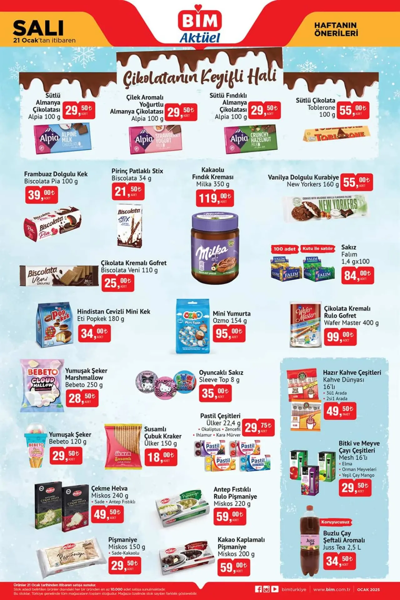 BİM, 21 Ocak 2025 Salı günü itibarıyla geçerli olacak yeni aktüel kataloğunu duyurdu. Bu hafta da müşterilerini uygun fiyatlarla buluşturan BİM, kişisel bakım ürünlerinden temel gıda ihtiyaçlarına kadar birçok kategoride büyük indirimler sunuyor. Haftanın önerileri kampanyasıyla öne çıkan bu katalog, kaliteli ürünleri bütçe dostu fiyatlarla satın alma imkânı sağlıyor. BİM mağazalarını ziyaret ederek bu fırsatları kaçırmayın!