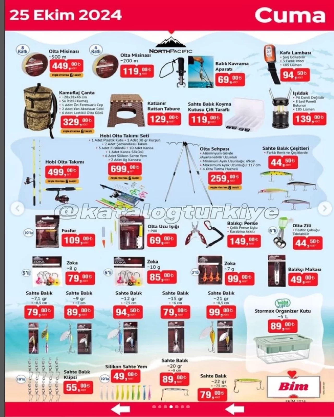 Balık tutmayı severlerin çok sevineceği birçok ürün Bim marketlerine 25 Ekim’den itibaren çok uygun fiyatlar ile gelecek. Balıkçı pensesinden sahte balıklara, olta zilinden olta sehpasına kadar birçok balık tutma materyali Bim’de.