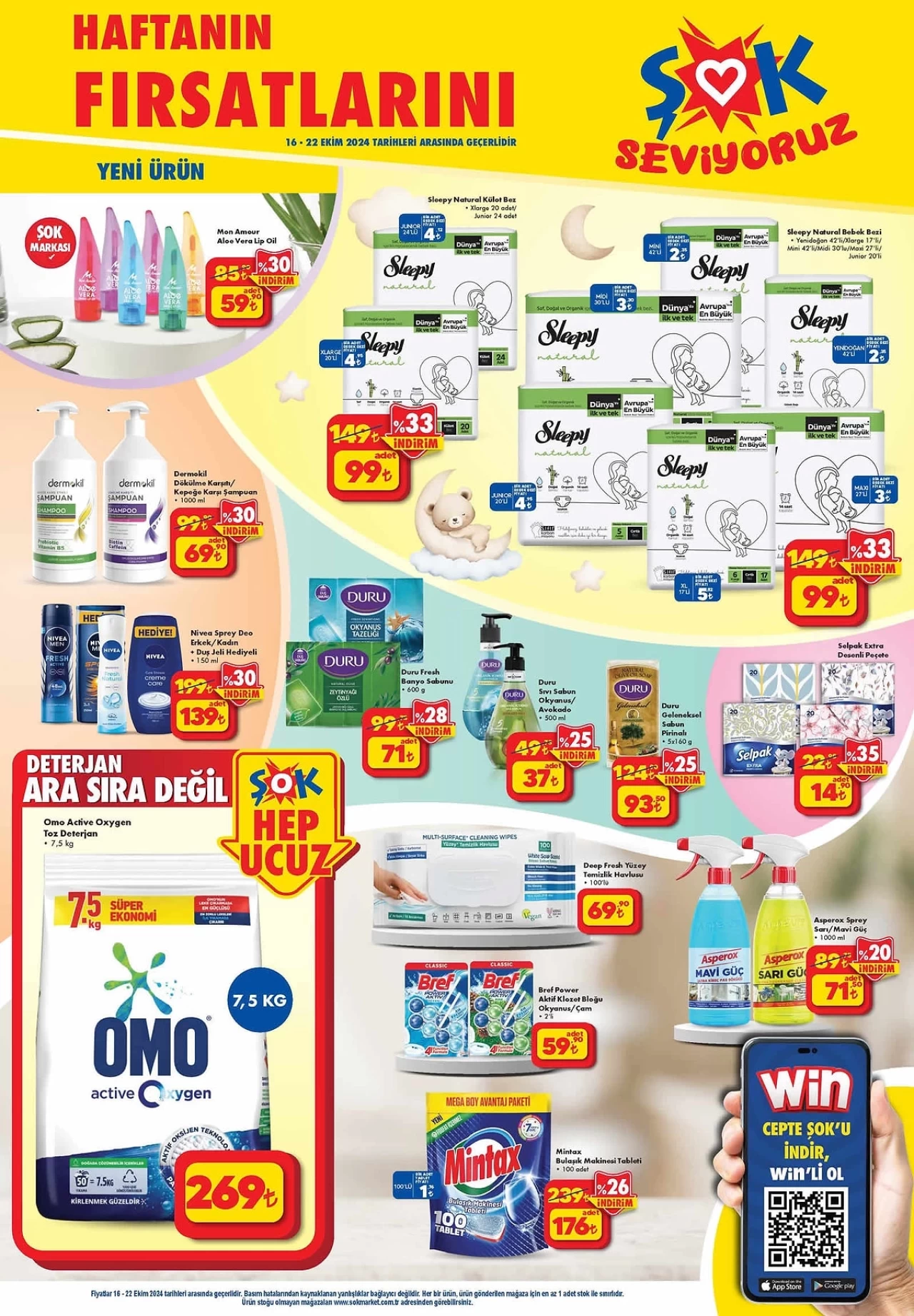 Şok zincir marketleri 16 Ekim 2024 tarihli aktüel kataloğunu yayımladı. Katalog ürünleri arasında en dikkat çeken indirim Bebek bakım ürünlerinde olurken 7’den 70’e herkes için çeşitli indirimlerin bulunması yüzleri güldürdü.