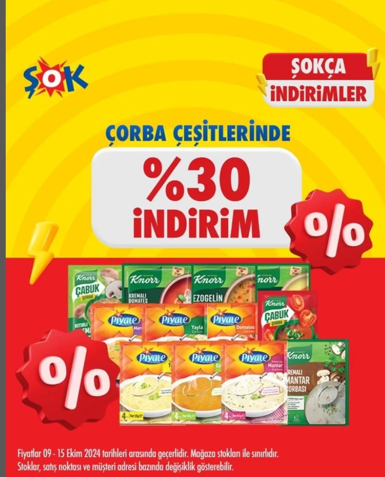 Şok zincir marketleri 15 Ekim 2024 tarihine kadar geçerli olacak indiriminde farklı birçok kategoride %30’a varan indirimlerini duyurdu. Son gün yarın olan indirimde kaçırılmayacak fiyatlar Şok marketlerinde.