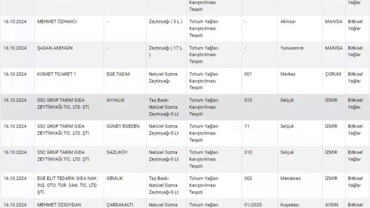 İşte Bakanlığın son olarak yayınladığı zeytinyağı markalarına ait o ifşa listesi