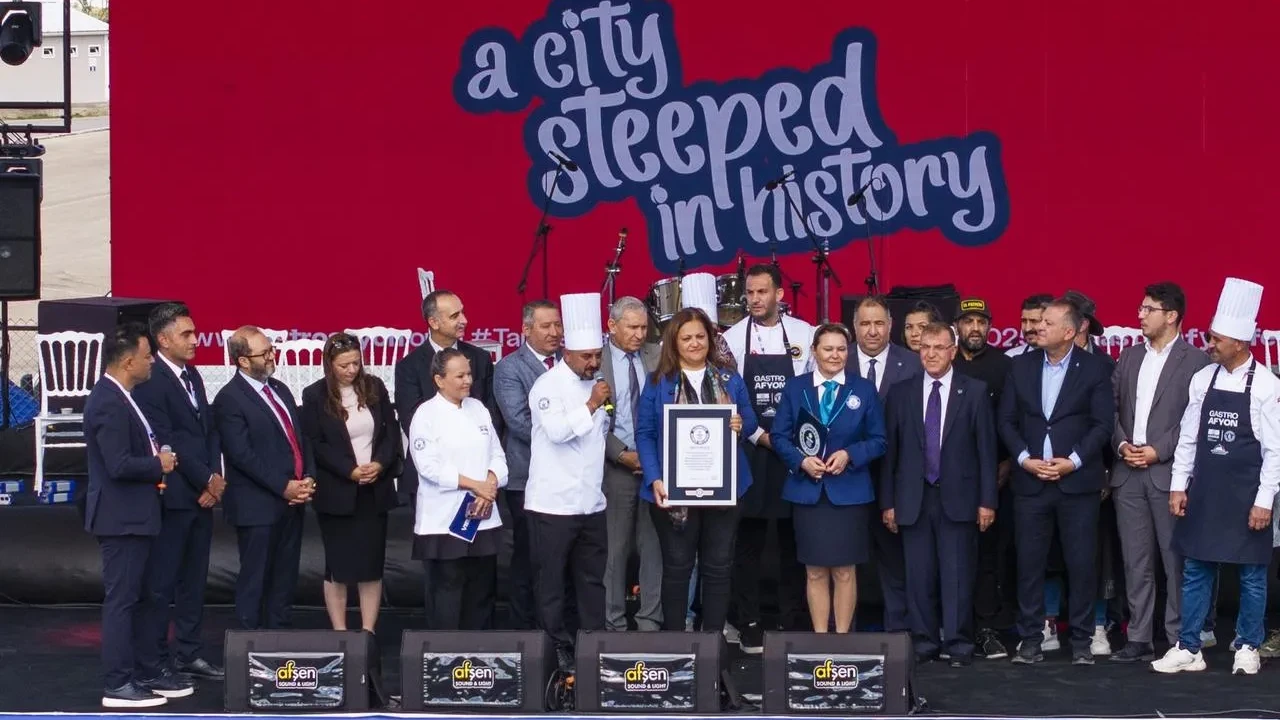 100 şef, 25 metrekarelik dev tava ile tarihi bir lezzet hazırladı. Afyon sucuğu ve 15 bin yumurta kullanılarak rekor denemesi yapıldı.