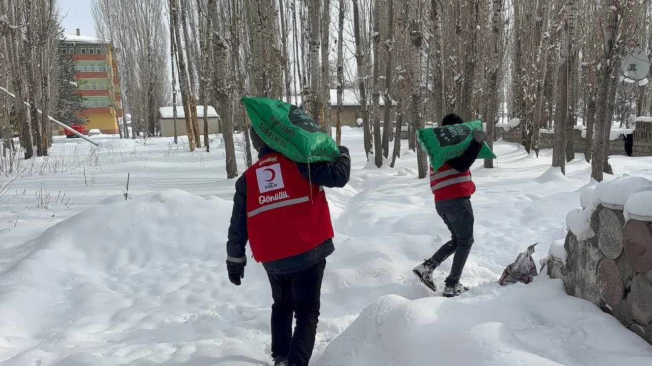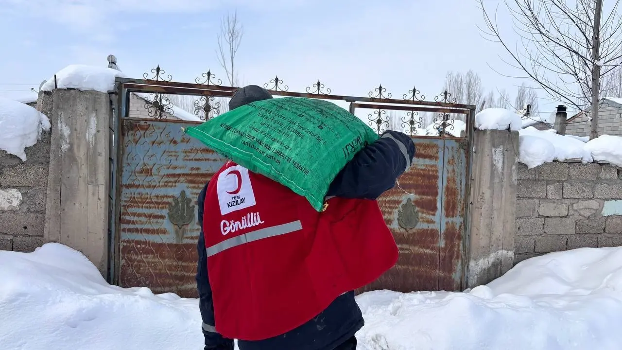 Ağrı'da Kızılay gönüllüleri, dondurucu soğuklarda ihtiyaç sahibi ailelere kömür yardımı ulaştırıyor.