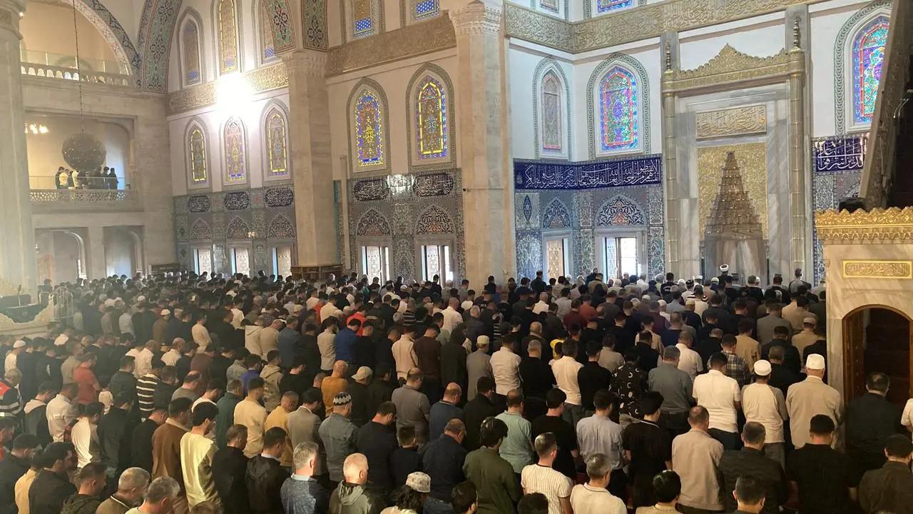 Başkentin sembol camisi Kocatepe'de binlerce vatandaş saf tuttu. Farklı ülkelerden gelen Müslümanlar geleneksel kıyafetleriyle dikkat çekti.