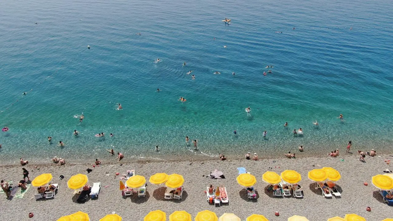 Kurban Bayramı'nın ilk gününde Antalya'da hava sıcaklığı 37 dereceye ulaşırken, sahillerde yoğun kalabalık gözlendi.