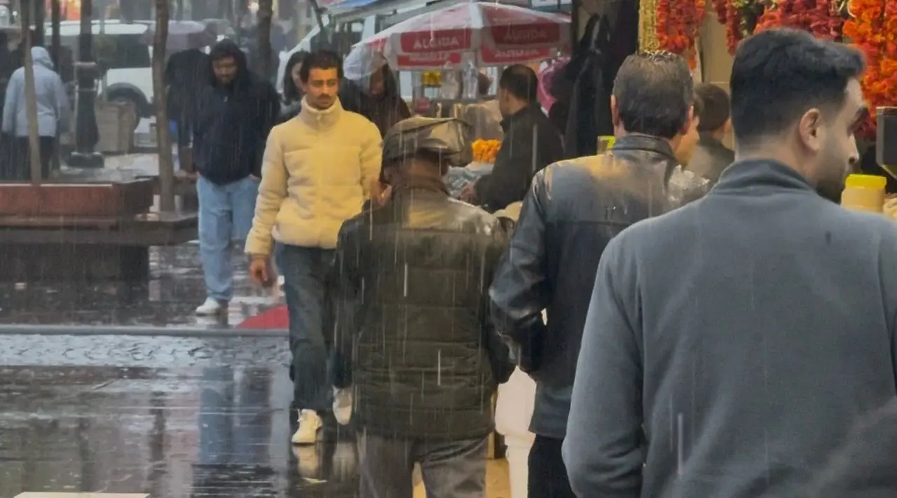 Öğle saatlerinde etkili olan yağmur, cadde ve sokaklarda su birikintilerine neden oldu. Yayalar, otobüs durakları ve kapalı alanlara sığınarak yağmurun dinmesini bekledi.