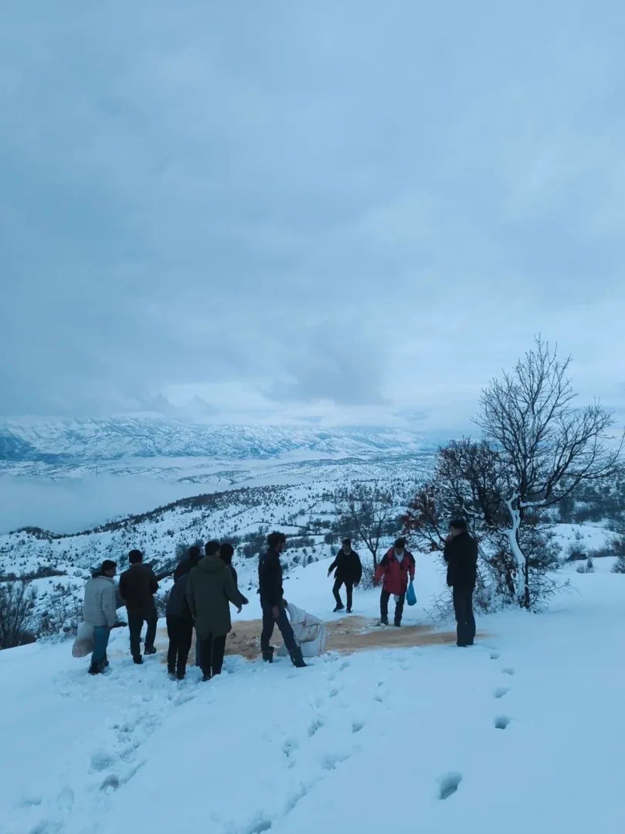 Erbağ Köyü'nde yoğun kar yağışı nedeniyle zor durumda kalan hayvanlara destek olundu. Muhtar Mehmet Ali Yıldız öncülüğünde gençler, dağlık alanlara yem yerleştirdi.