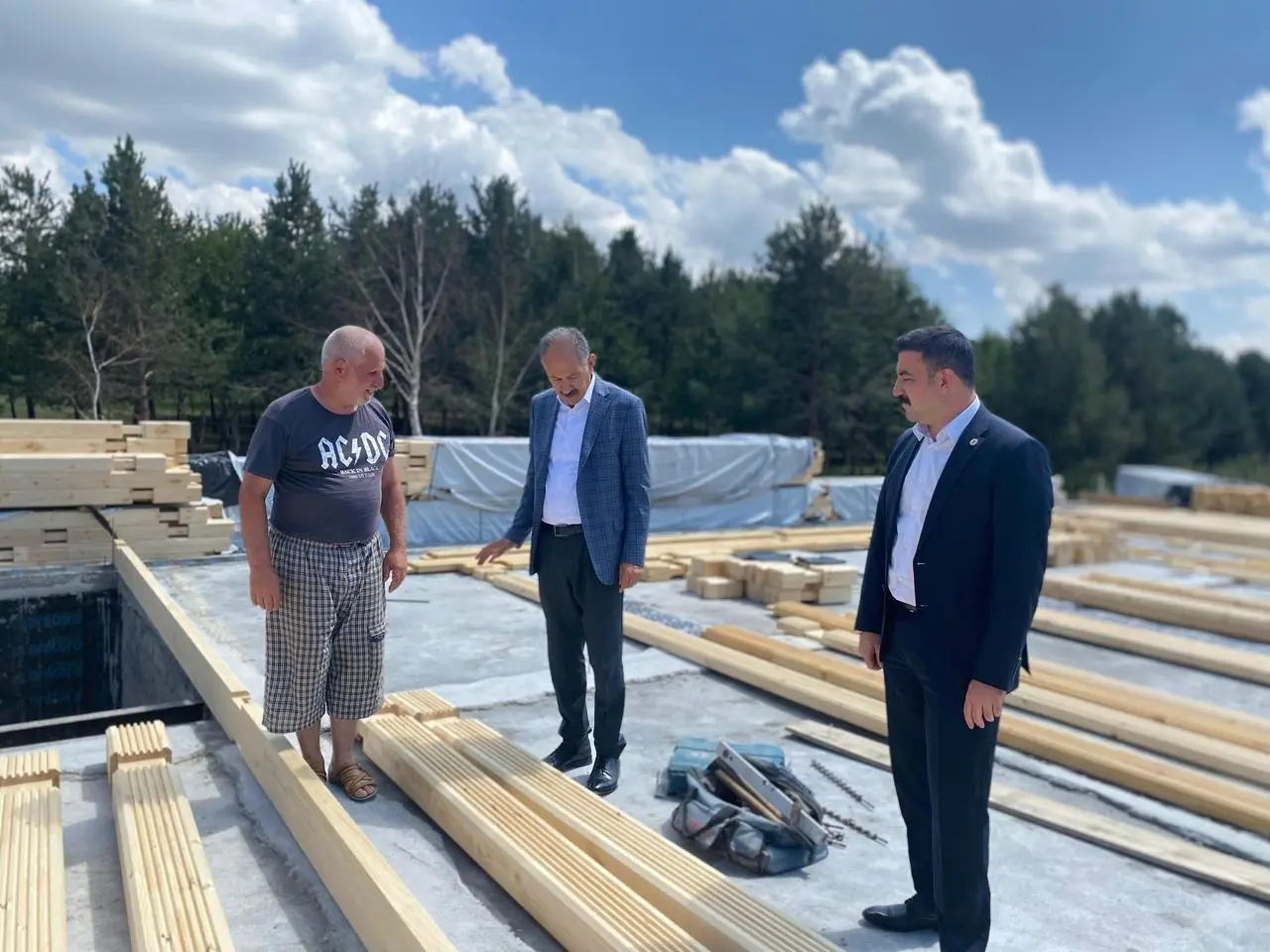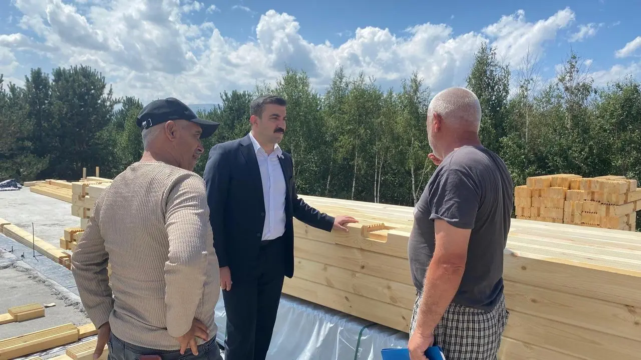 Kaymakam Muhammed Burak Akköz ve Belediye Başkanı Zeki Elma inşaat alanını inceledi. Akköz, evin yıl sonuna tamamlanmasının beklendiğini belirtti.