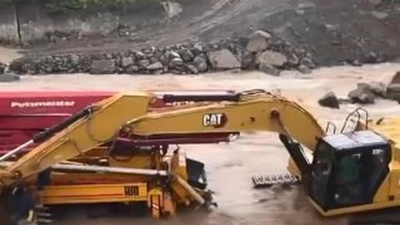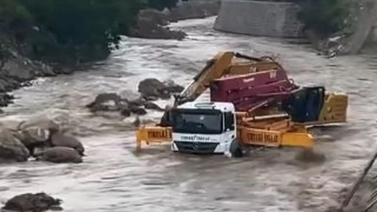 İş makinesi operatörleri durumu fark ederek araçlarını terk etti. Beton pompası ve ekskavatör sular arasında kalırken can kaybı yaşanmadı.