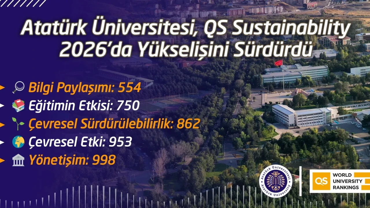 Atatürk Üniversitesi, QS Sustainability 2026 sıralamasında dünya genelinde 931'inci olarak büyük bir başarıya imza attı.
