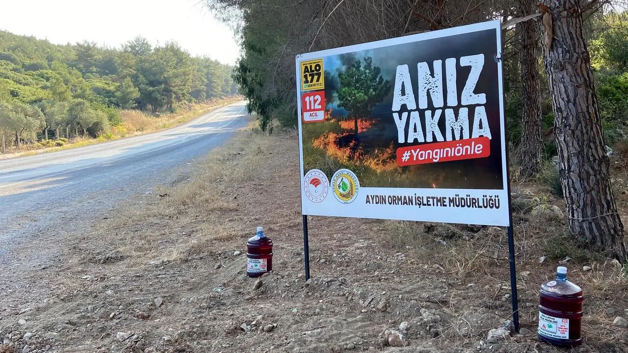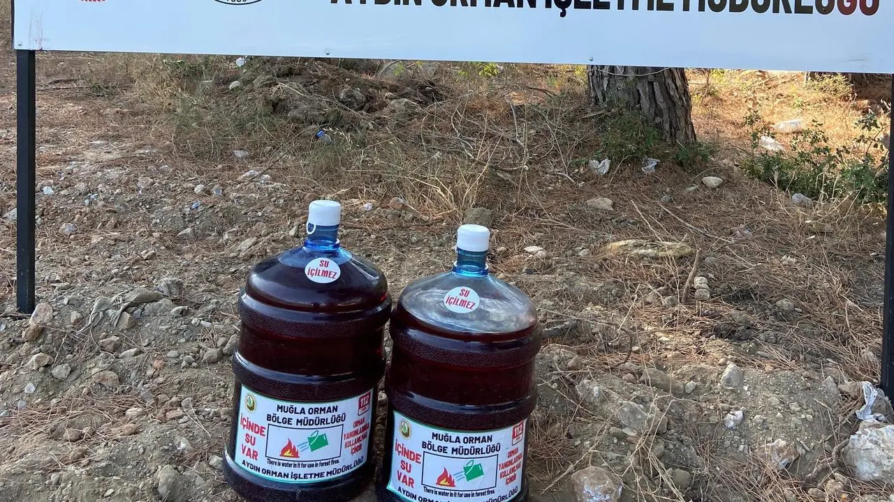 Aydın Orman İşletme İl Müdürlüğü yeni bir önlem stratejisi geliştirdi. Kritik bölgelere su dolu damacanalar stratejik olarak konumlandırıldı.