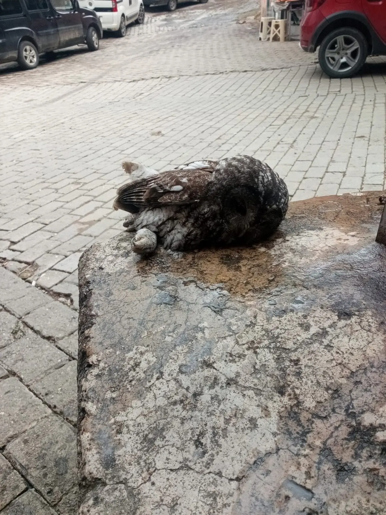 Kahvehanenin camına çarpıp sersemleyen baykuş, mahalle muhtarı tarafından fark edildi. Muhtar, baykuşu kurtararak belediye başkanına haber verdi ve yardım istedi.