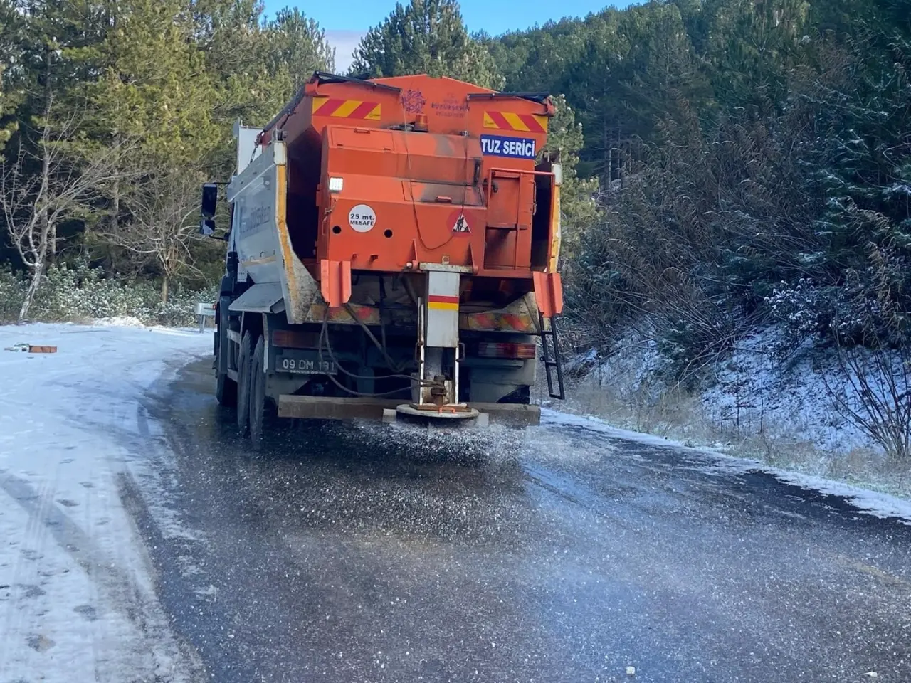 Aydın'da kar yağışı etkili olurken, Büyükşehir Belediyesi ekipleri çalışmalara hızla başladı. Yollarda buzlanmayı önlemek için tuzlama ve kar temizleme işlemleri yapılıyor.