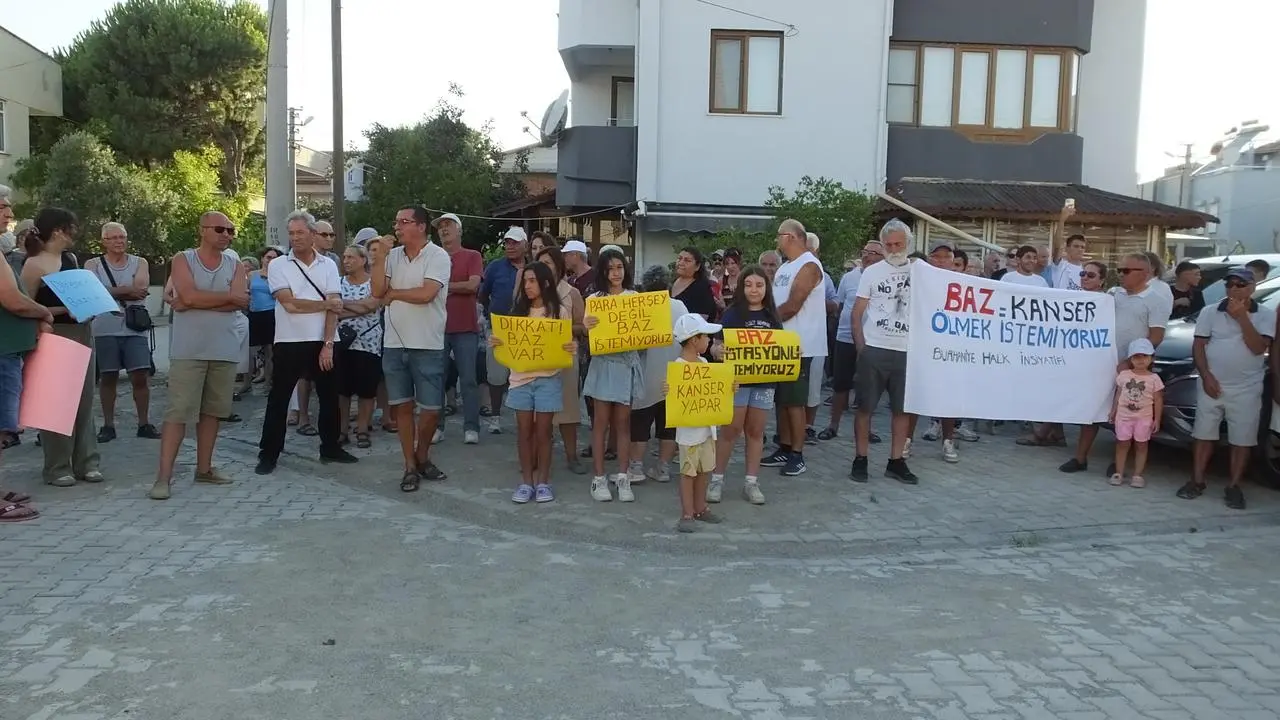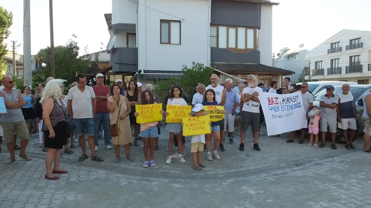 Balıkesir'de mahalle sakinleri, evlerin çatısına kurulan baz istasyonlarına karşı sokaklara çıktı.