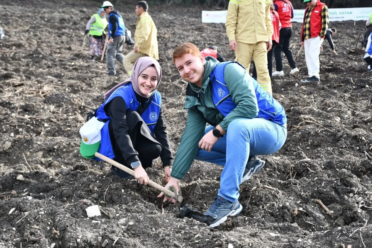 Balıkesir'de gençler, "Yeşil Vatan" için fidan dikerek doğaya katkı sağladı.