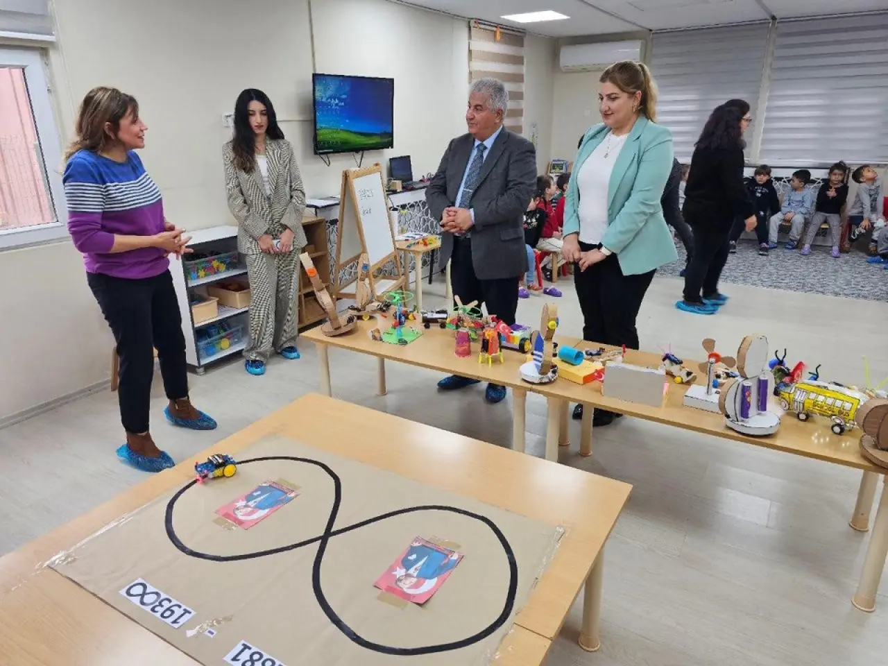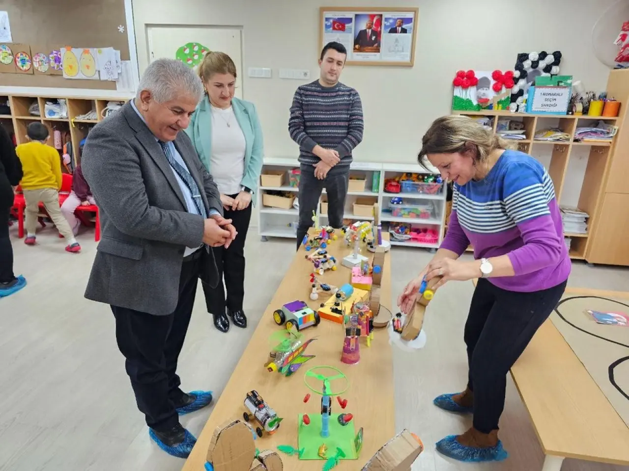 Müdür Kal, sınıfları gezerek öğrencilerin hazırladığı çalışmaları inceledi. Öğretmen ve öğrencilerin emeklerini takdir ederek, erken çocukluk eğitiminin önemine dikkat çekti.