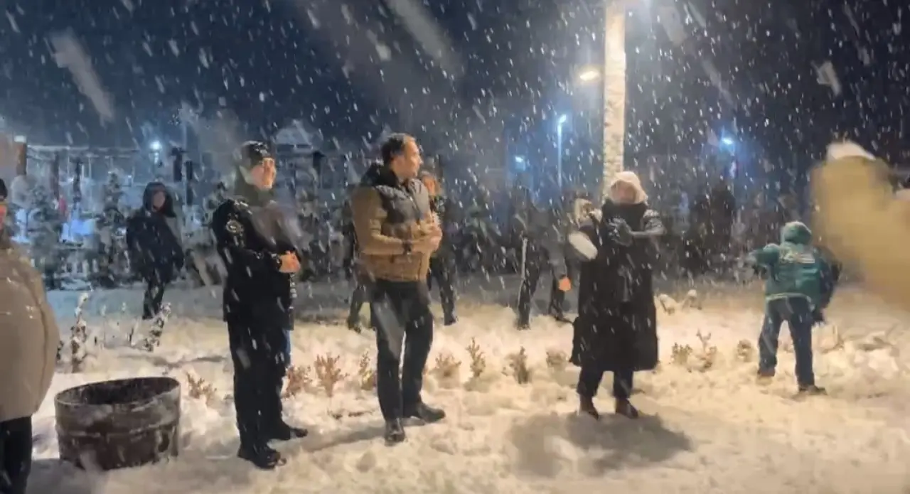 İlçe Kaymakamı Fırat Kadiroğlu, kurum müdürleri ve vatandaşlar birlikte kartopu oynadı. Kar yağışının keyfini çıkaran grup, akşam saatlerine kadar eğlenceye devam etti.