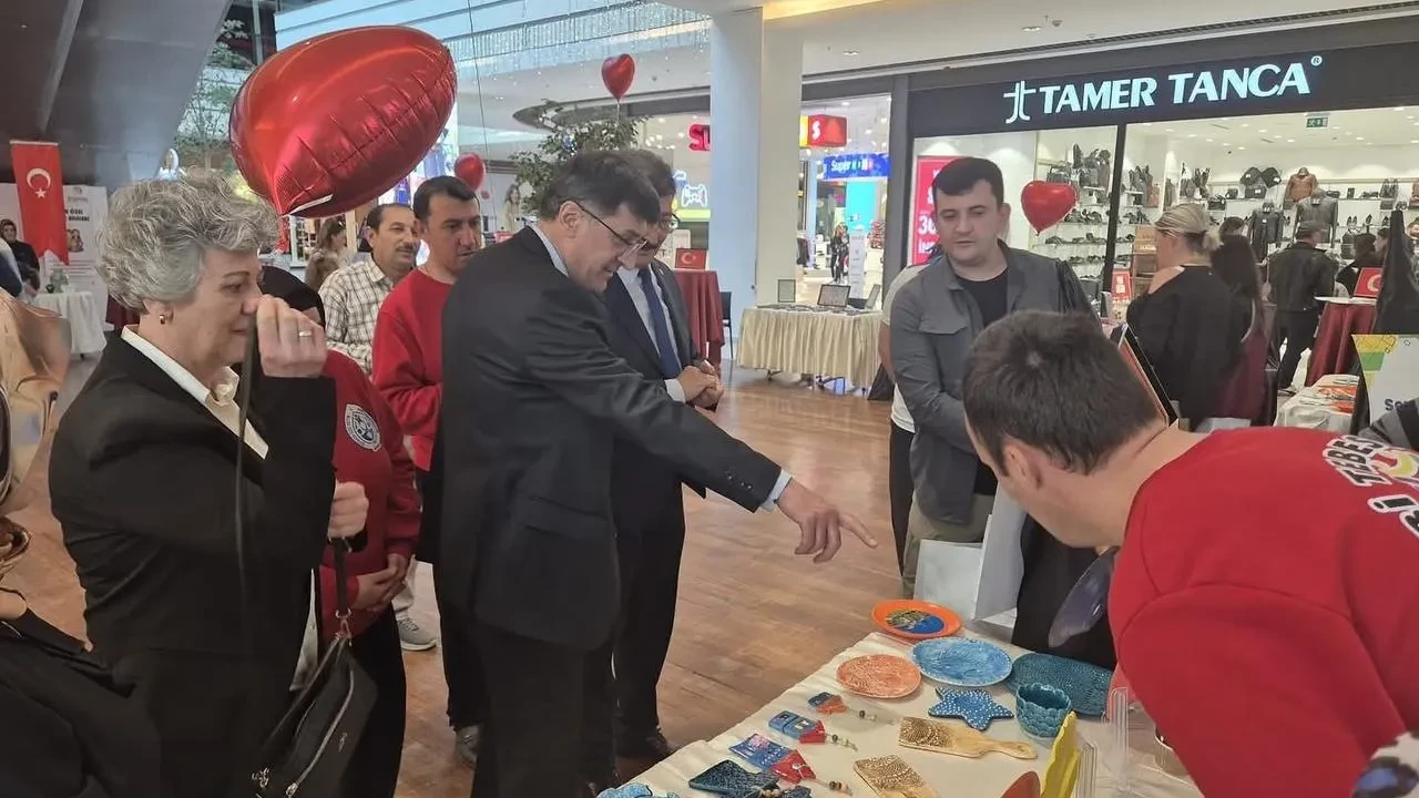 Kütahya Belediye Başkanı Eyüp Kahveci, özel çocukların eserlerinin sergilendiği etkinliğe katıldı. Proje kapsamında hazırlanan el emeği eserler büyük ilgi gördü.