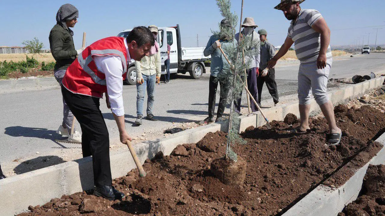 Belediye ekipleri yol yapım çalışmalarını yeşil alan düzenlemeleriyle destekliyor. Fen İşleri Müdürlüğü zemin hazırlığını tamamlarken, peyzaj ekipleri ağaçlandırma çalışmalarına başladı.