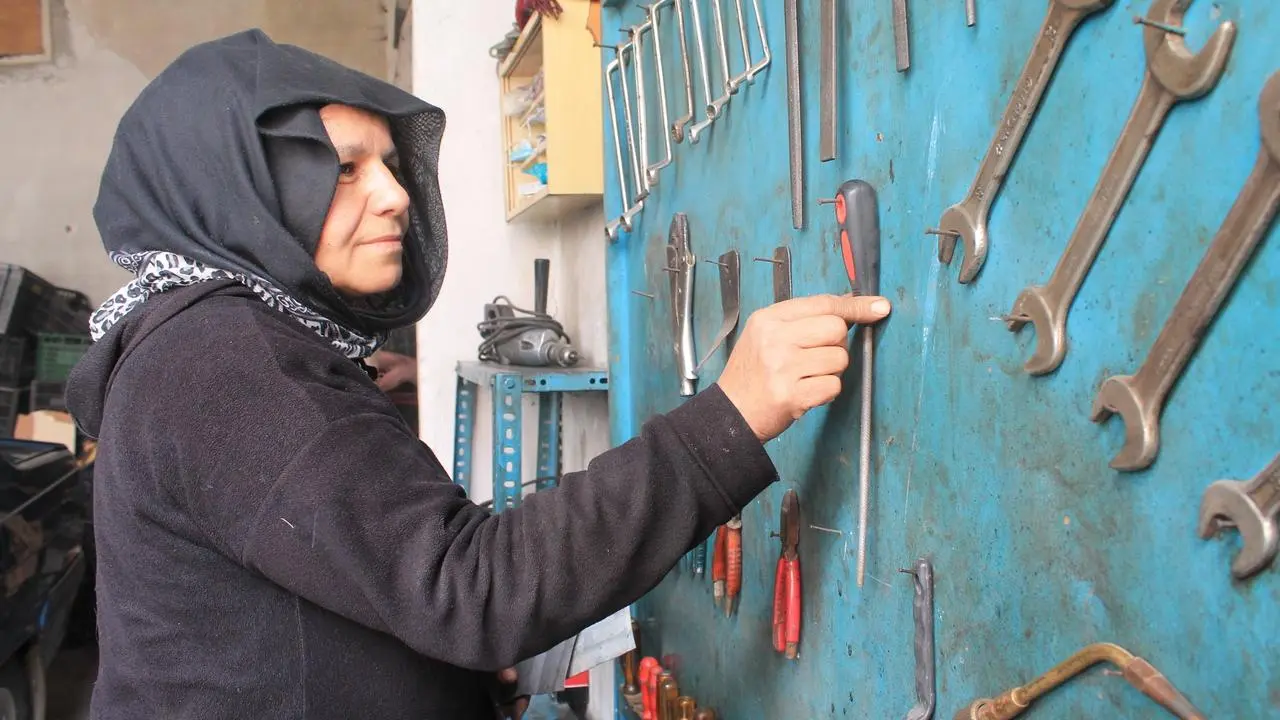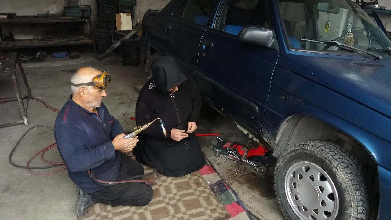 Bayburt'ta yaşayan 59 yaşındaki Hatice Kırlangıç, 25 yıldır eşiyle birlikte oto kaportacılığı yaparak sanayinin tek kadın çırağı oldu.