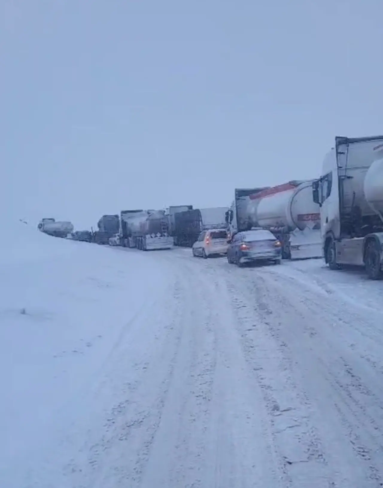 Kop Dağı Geçidi’nde yoğun kar ve tipi yüzünden ulaşım felç oldu. Ağır tonajlı araçlar başta olmak üzere birçok araç buzlanma nedeniyle hareketsiz kaldı.