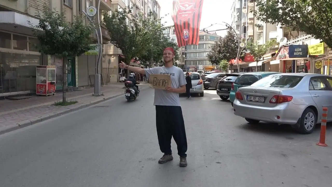 Berlinli gezgin Felix Roos, otostopla çıktığı dünya turunda Samsun'un Bafra ilçesine ulaşarak yeni durağında mola verdi.