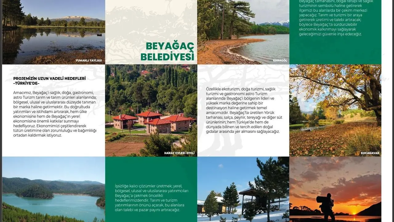 Beyağaç Belediye Başkanı Sezayi Pütün, yeni turizm projelerini kamuoyuna duyurdu. Projelerin temel amacı ilçede istihdamı artırmak ve ekonomik kalkınmayı sağlamak.