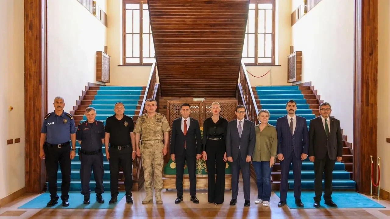 Vali Aygöl'ü makamında üst düzey yöneticiler ziyaret etti. Jandarma Eğitim Komutanı ve Belediye Başkanı başta olmak üzere tüm kurum temsilcileri hazır bulundu.