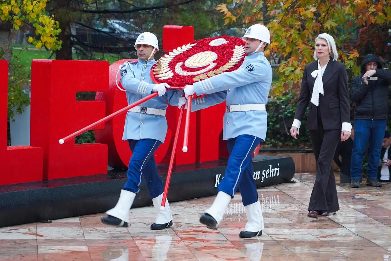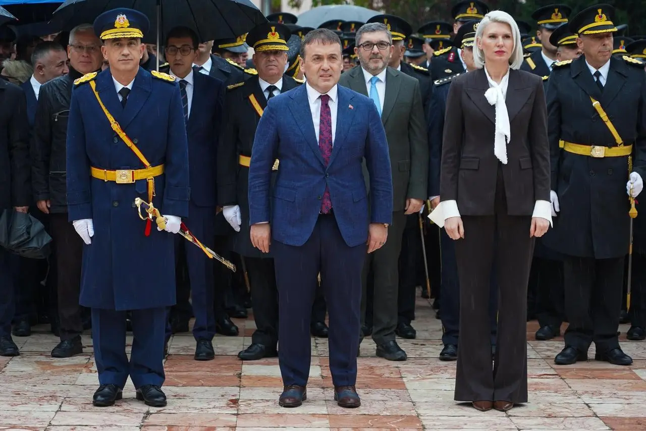 Cumhuriyet Meydanı’nda düzenlenen törene çelenk sunumu ile start verildi. Saygı duruşu ve İstiklal Marşı’nın ardından program devam etti.