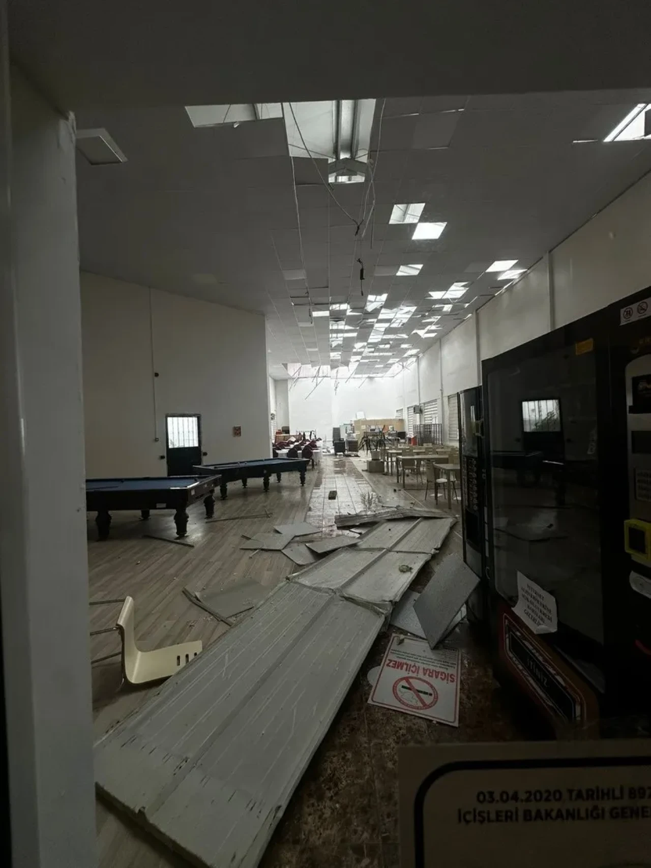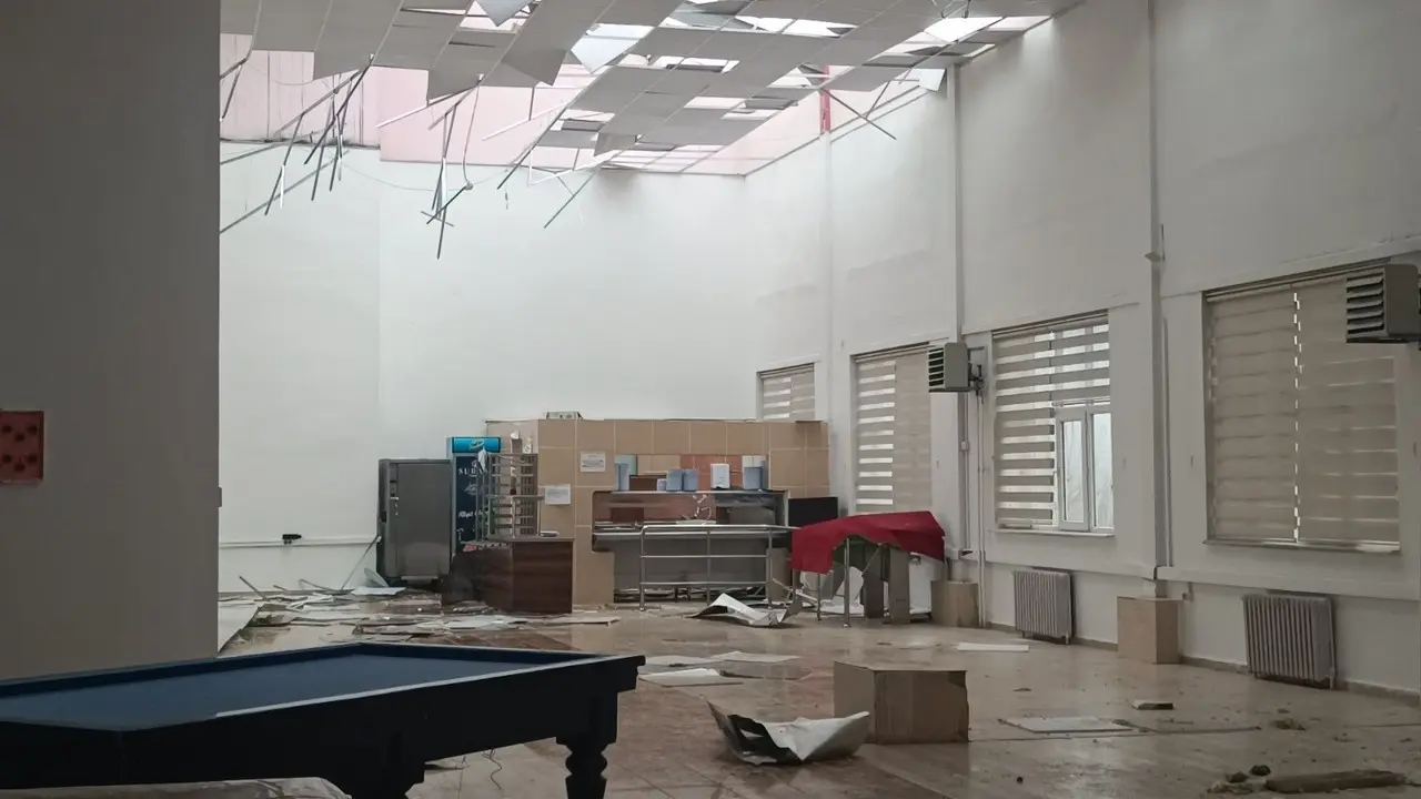 Fırtına saatte 80-90 kilometreye ulaşan rüzgâr hızıyla yıkıma neden oldu. Pazaryeri Meslek Yüksekokulu'nun yemekhane çatısı uçtu.