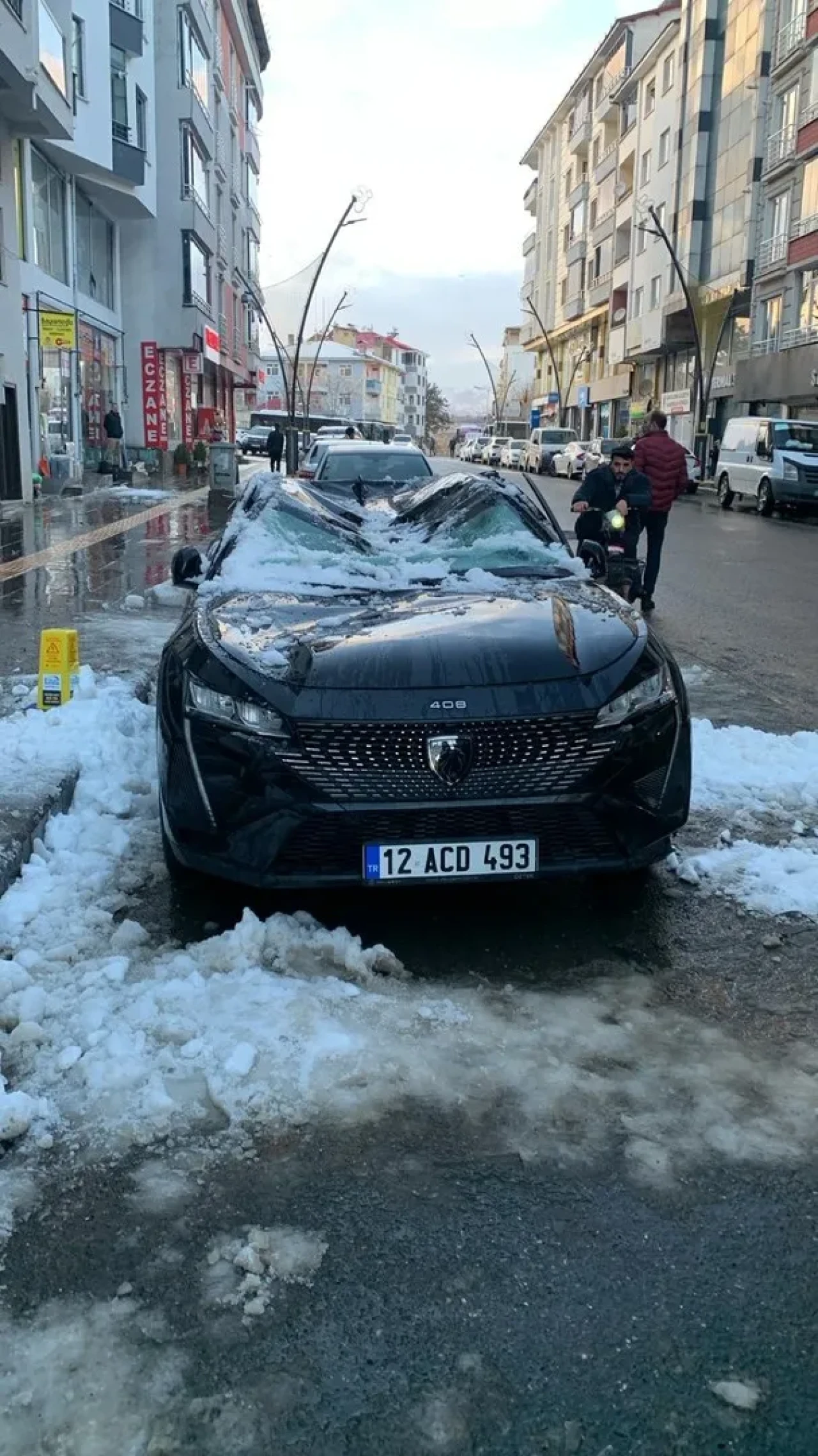 Bingöl'de havaların yumuşamasıyla çatıdan düşen kar, park halindeki otomobile ciddi zarar verdi. Şans eseri yaralanan olmazken, olay kısa süreli paniğe neden oldu.
