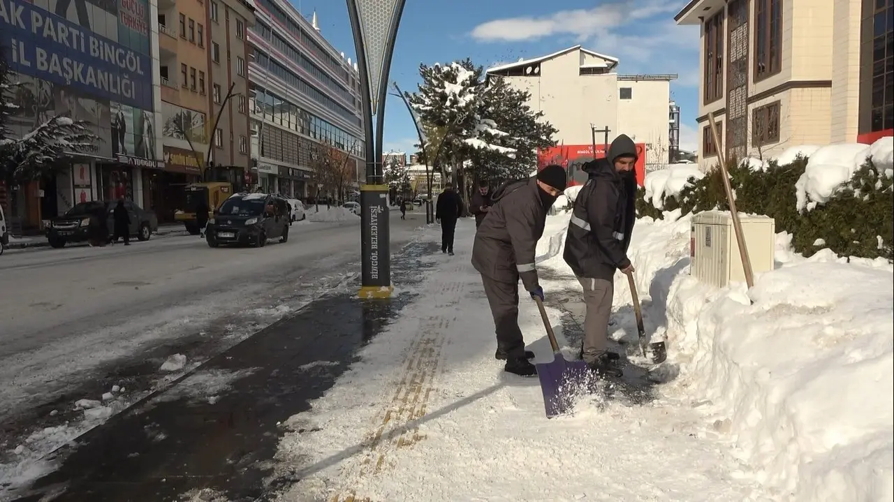 Bingöl'de yoğun kar yağışının ardından kar temizleme çalışmaları hız kazandı. Ekipler, kent merkezinde ana arterler ve caddeler üzerinde yoğun mesai harcıyor.