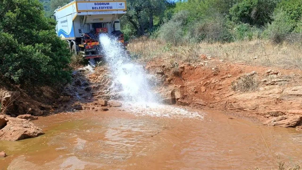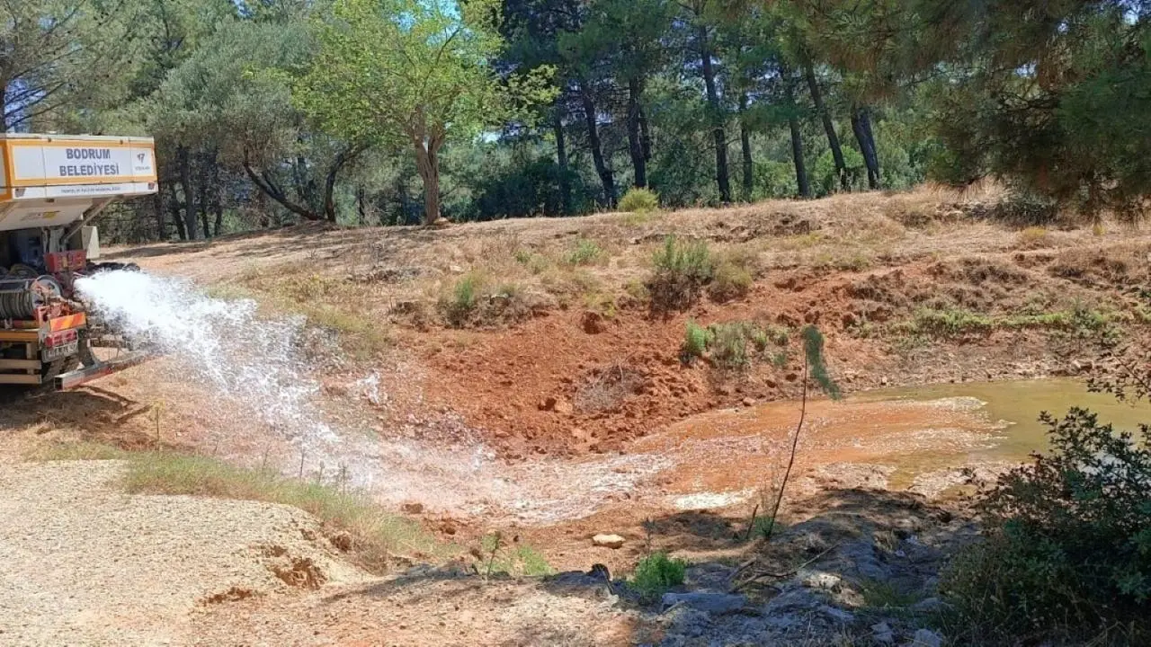 Bodrum Belediyesi, kırsal bölgelerdeki göletlere su takviyesi yaparak kuruma riskini önlüyor.