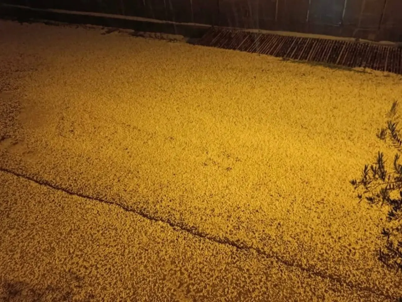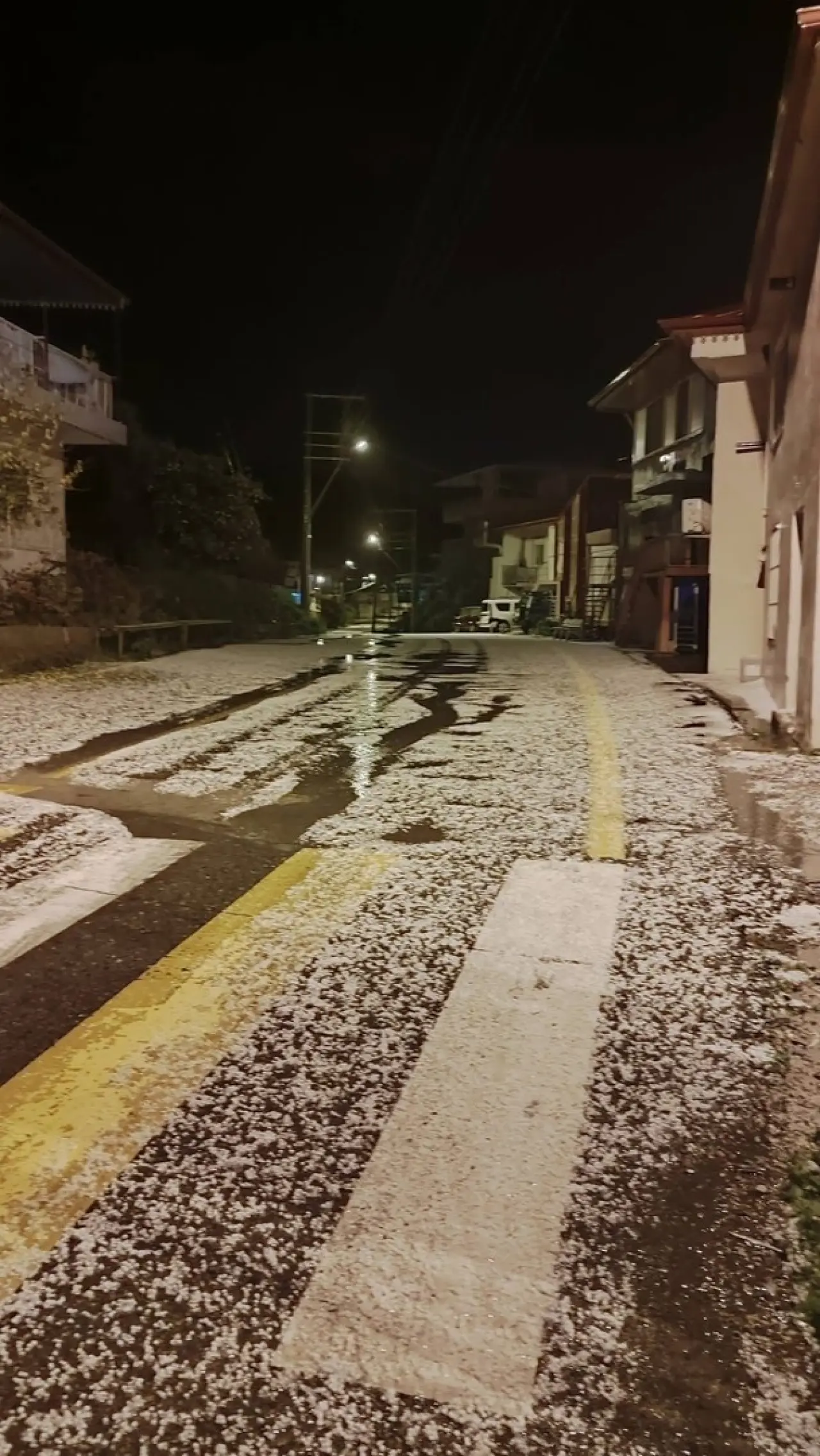 Dolu yağışı bu kez Mersin'in Bozyazı ilçesini vurarak tarım alanlarına ciddi zarar verdi. Akşam saatlerinde etkili olan yağış, yolları ve bahçeleri beyaza bürüdü.