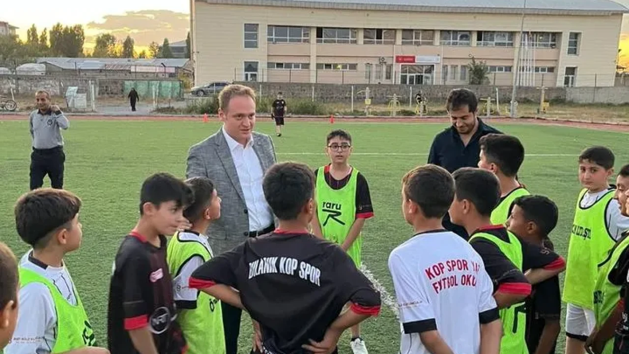 Bulanık Kaymakamı Ömer Övünç Koşansu, ilçe stadında antrenman yapan çocuklarla bir araya gelerek moral verdi.