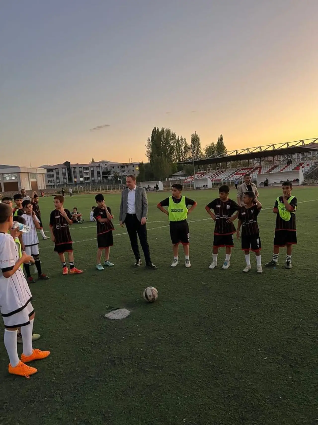 Kaymakam Koşansu, minik sporcuların çalışmalarını izleyip onlarla sohbet etti. Antrenör Ramazan Çarbuğa eşliğinde şut çalışmasına katılarak çocukları motive etti.