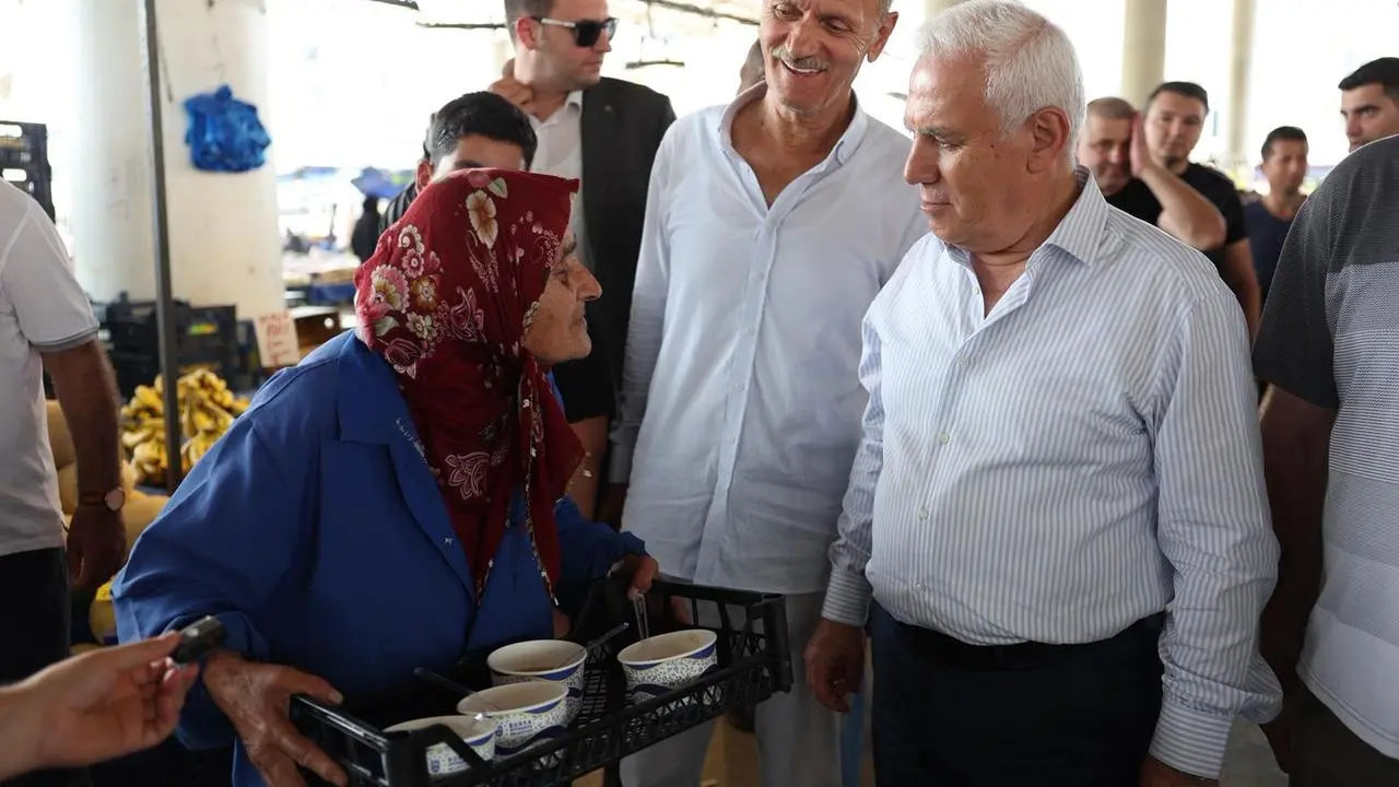 Aşure dağıtımının ardından Başkan Bozbey, pazar esnafı ve alışveriş yapanlarla sohbet etti. Vatandaşlara bereketli bir yıl temennisinde bulundu.