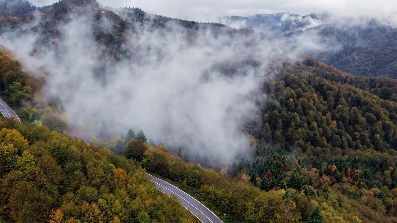 Sakarya'nın Çam Dağı, sonbaharın renk cümbüşü ve sis bulutuyla büyüleyici bir manzara sunuyor.