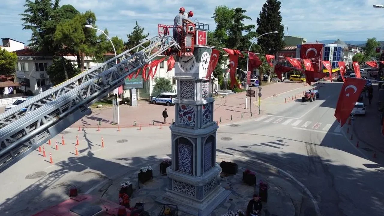 İznik Belediyesi, saat kulesine özel bir leylek yuvası yerleştirdi.