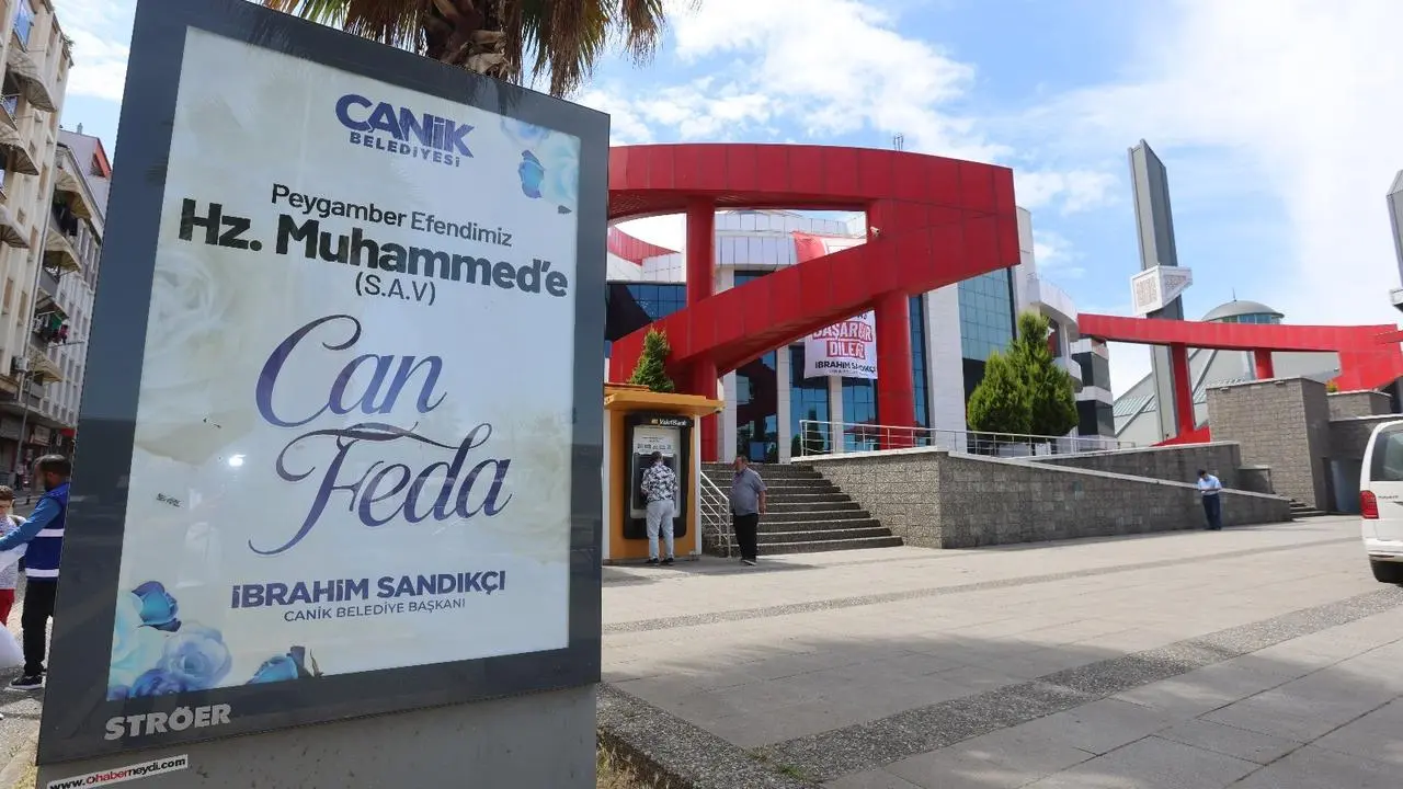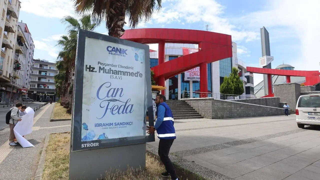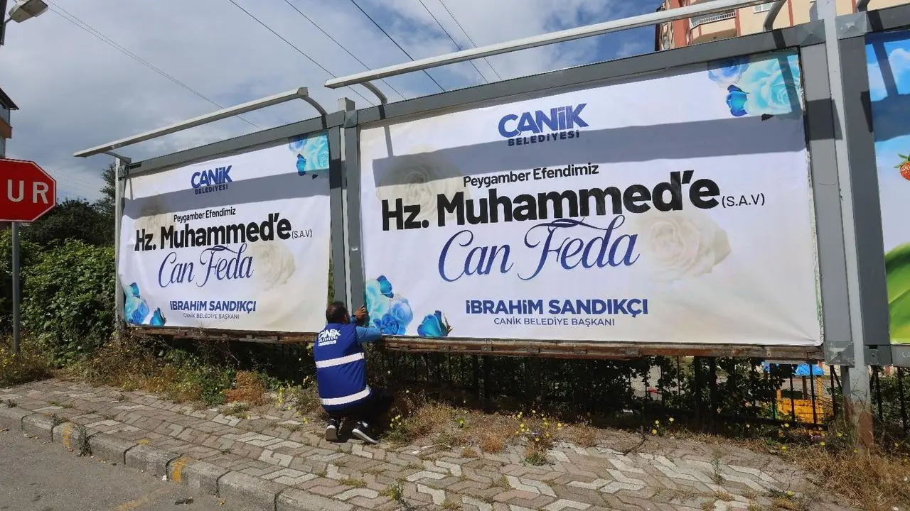 Samsun'un Canik Belediyesi, Hz. Muhammed'e yönelik hakaretleri protesto etmek için ilçe geneline "Hz. Muhammed'e Can Feda" afişleri astı.