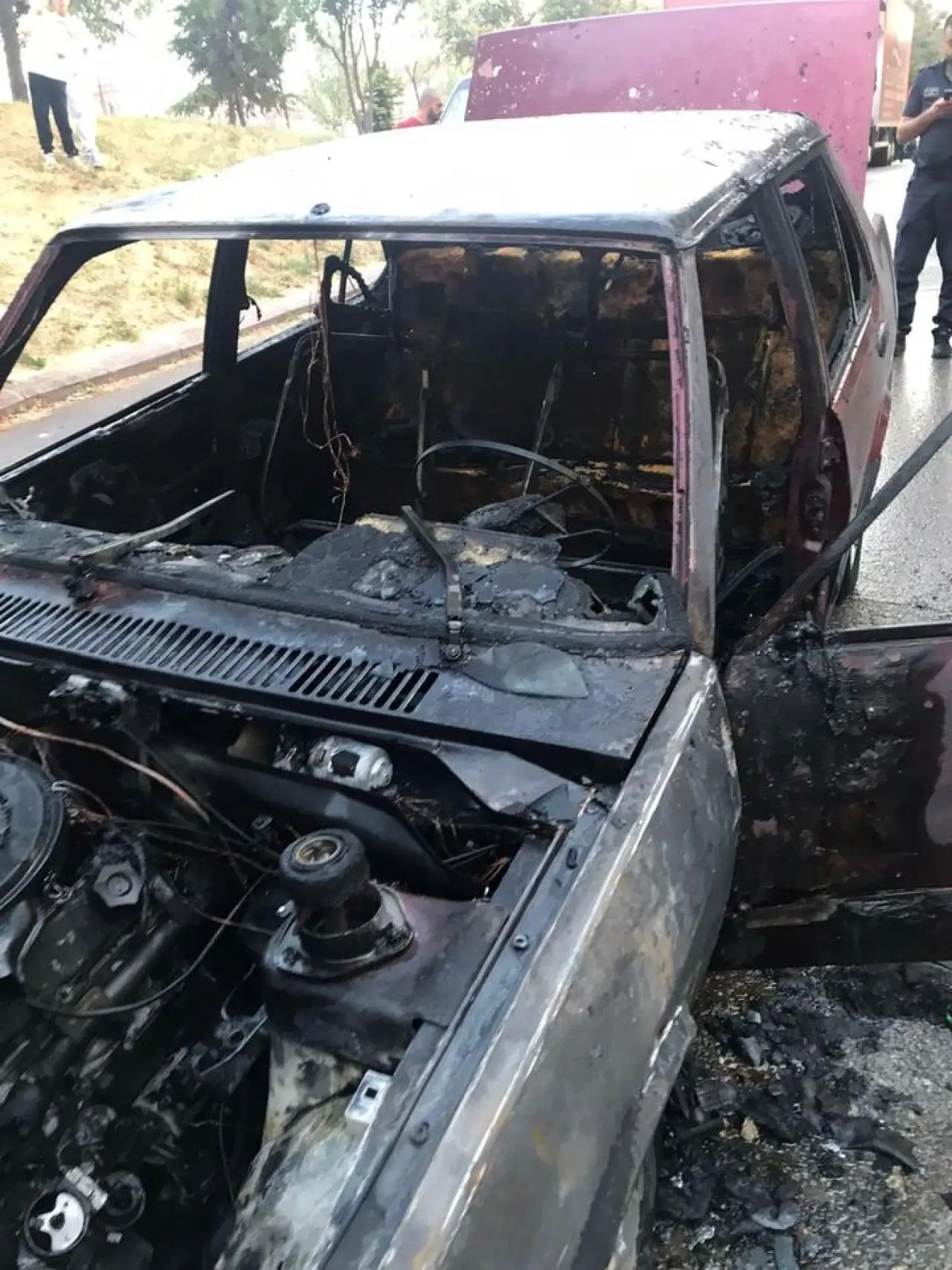 İtfaiye ekiplerinin müdahalesine rağmen araba kullanılamaz hale geldi ve tamamen yandı.