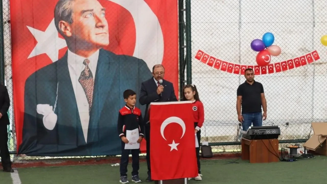Şehit Öğretmen Sezgin Yolcu YBO Halı Sahası'nda devam eden törene çok sayıda katılım oldu. Kaymakam, belediye başkanı ve yerel yöneticiler hazır bulundu.
