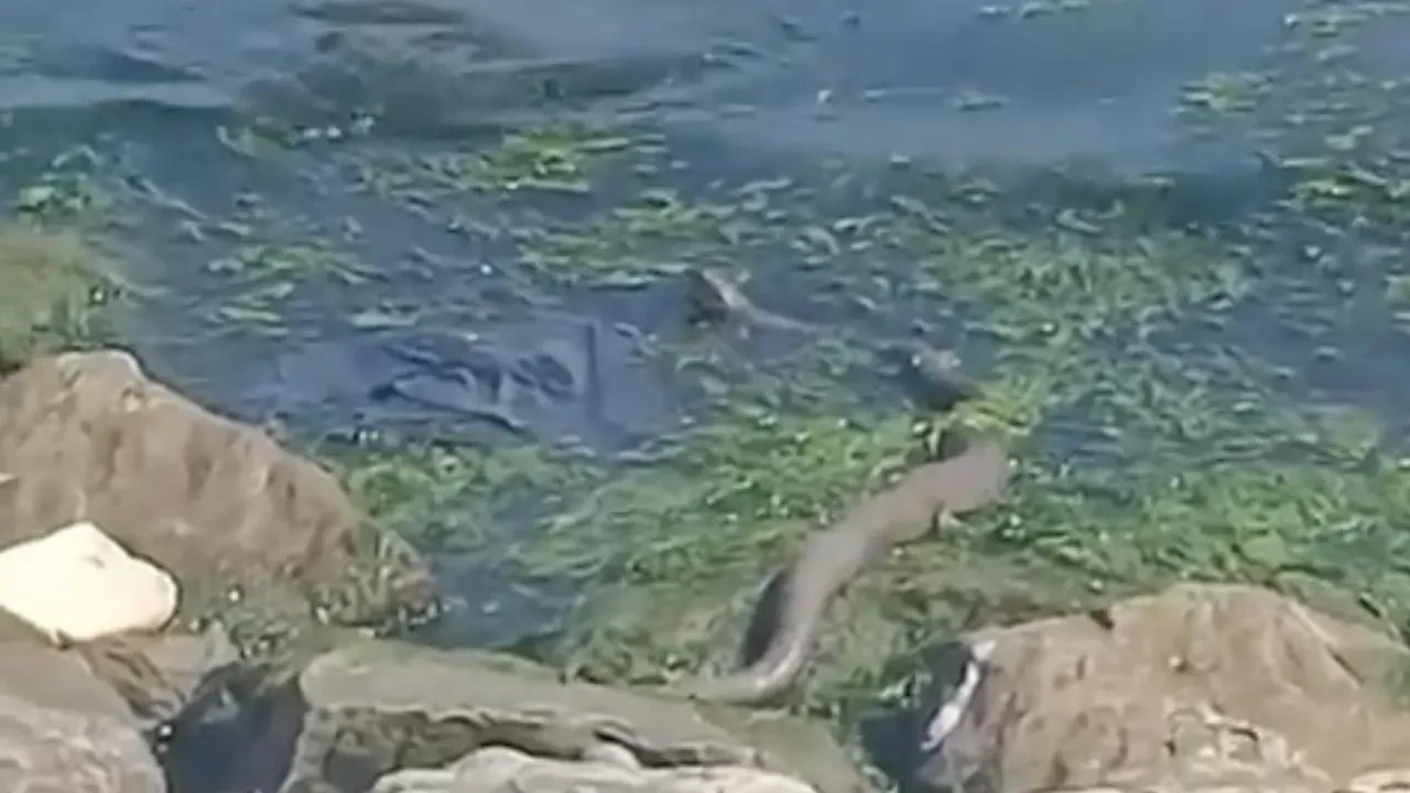 Sekapark 2. etapta görülen yılan, bölgede büyük korku yarattı. Çocukların ve yetişkinlerin şaşkınlıkla izlediği yılan, deniz kenarında avlanmaya çalıştı.