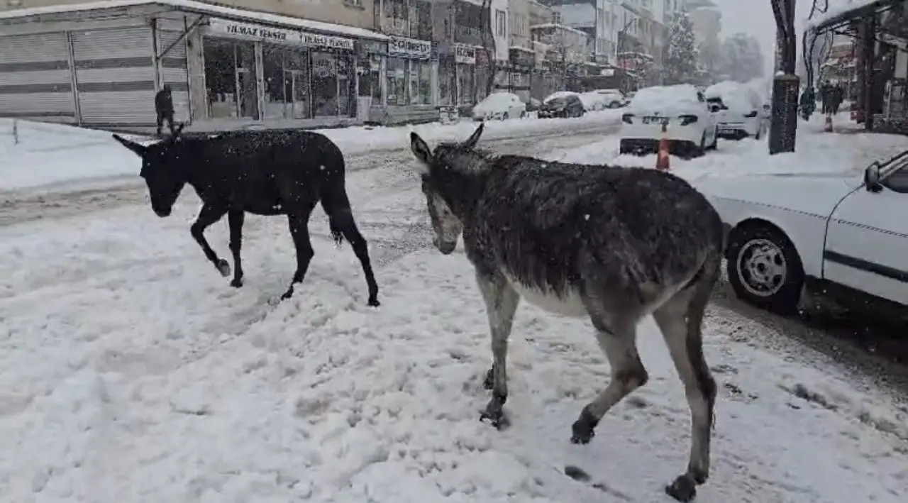 Diyarbakır'ın Çermik ilçesinde sahipsiz iki eşek karlar altında kalınca duyarlı bir vatandaş onları çiftliğine götürüp besledi.