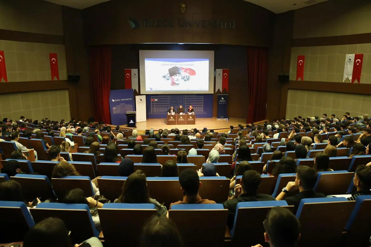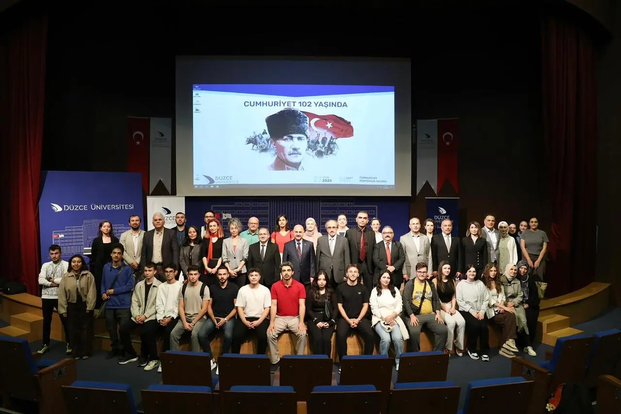 Düzce Üniversitesi Rektörü Prof. Dr. Nedim Sözbir, cumhuriyetin 102. yılını kutlayan bir programda konuştu.