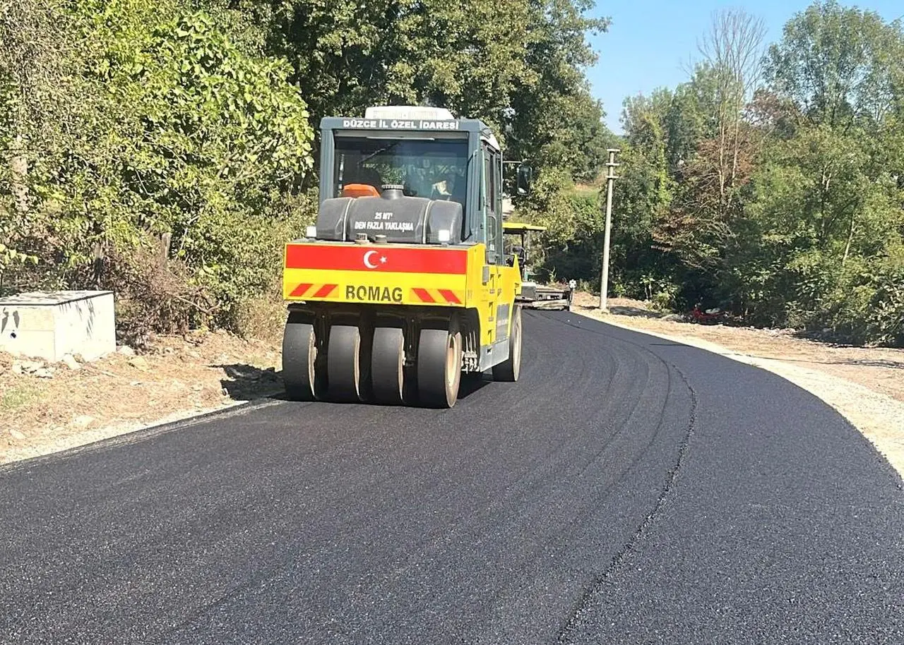 Düzce'de köy yollarının asfaltlanmasıyla ulaşım konforu artırılıyor.