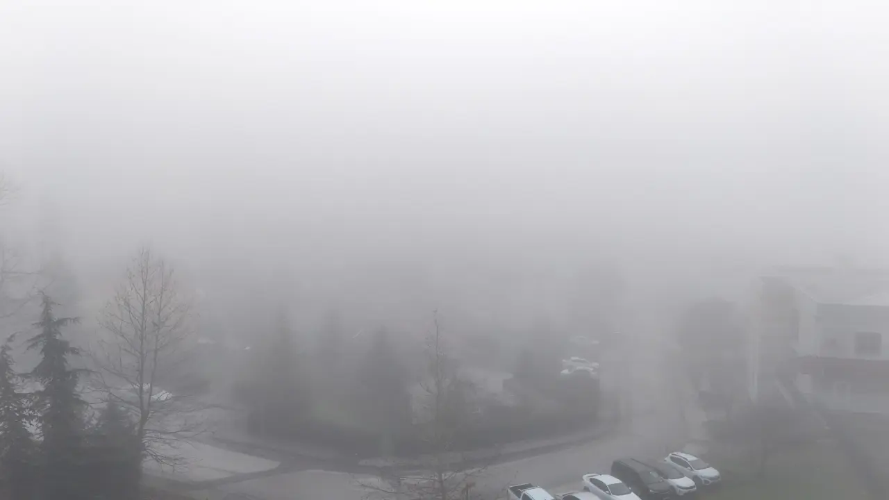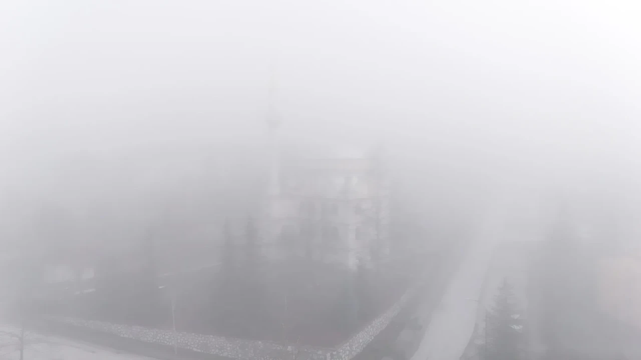 Hava sıcaklığı 0 derece olarak ölçülürken, güvenlik tedbirleri alındı. Sis içinde binalar ve şehir silüeti zaman zaman kayboldu.